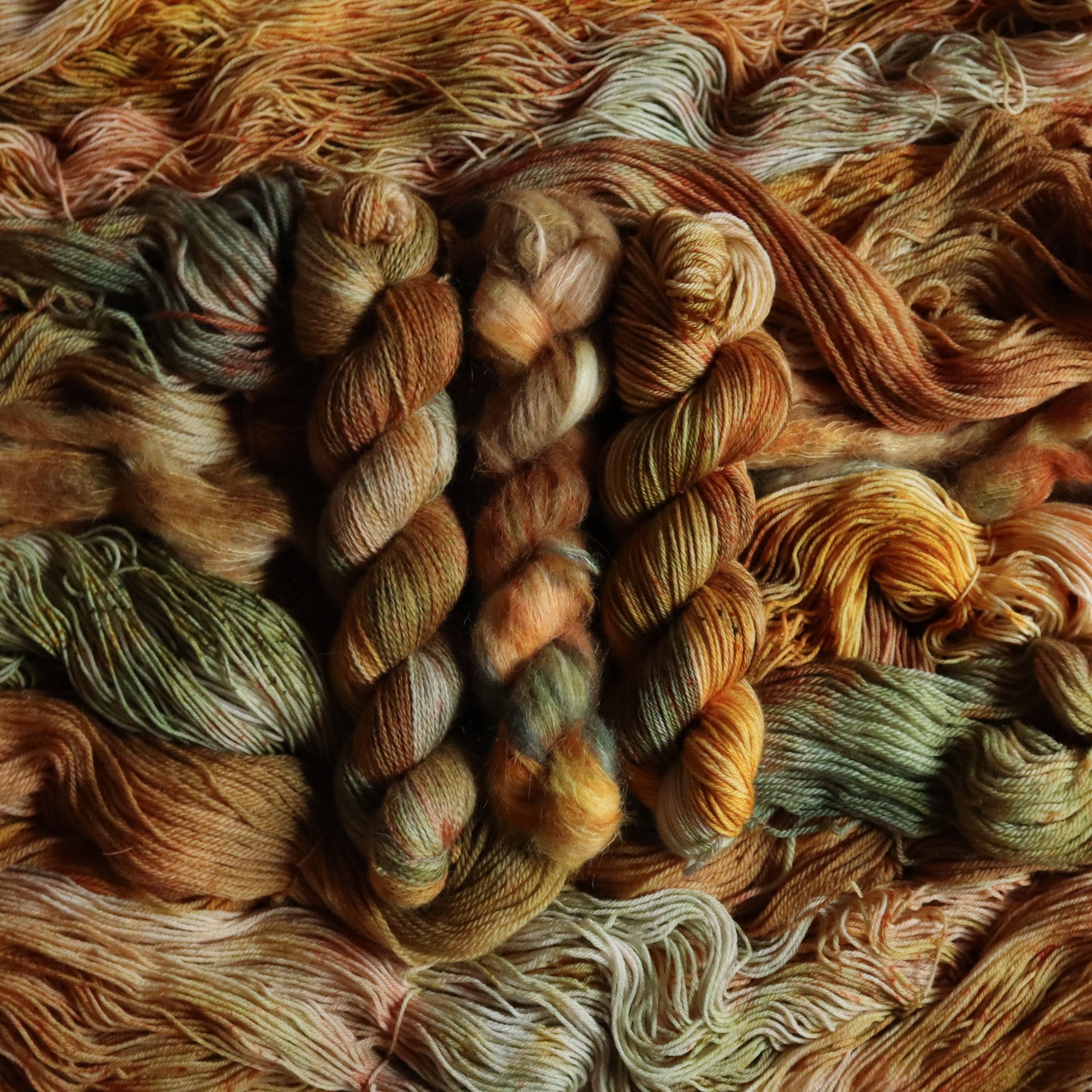 All skeins are carefully dyed with acid dye, washed and rinsed, however some bleeding may still occur. Each skein is unique and therefore colors may vary slightly from one to the next. Due to differences between monitors and screens, actual colors may also vary from what is shown. I recommend handwashing in cool water. Listing is for one skein only!