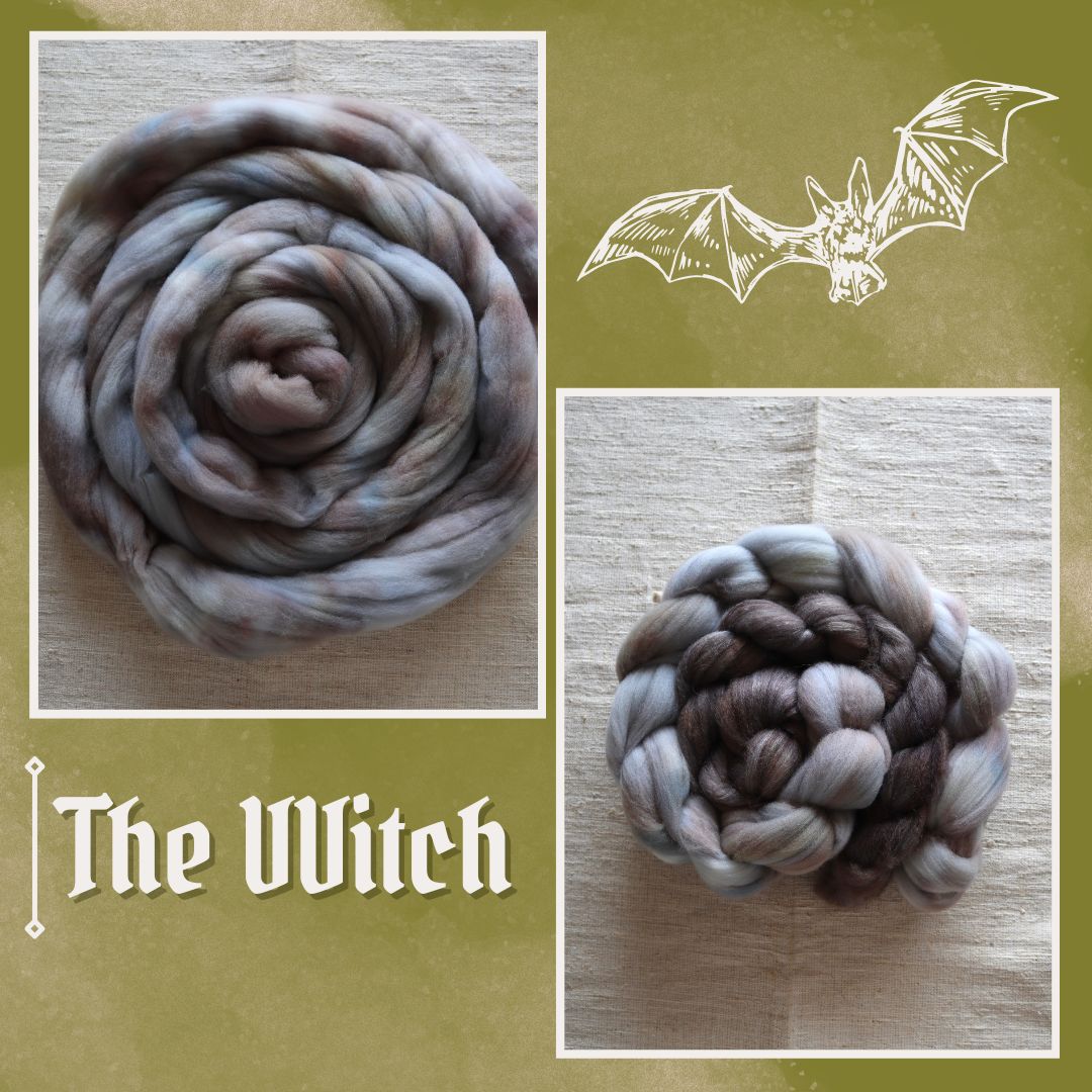 The Halloween colorway is based off of my #1 favorite “comfort” movie, a film that I just always fall back to when I feel like I have nothing else to watch, 🐐 “The VVitch” 🐐! I love the isolated setting, the quiet creepiness, and also the not-so-subtle spooks of it all! I especially wanted to capture the chilling eeriness of the woods that perpetually looms behind the family’s small cabin and of course, the suspicious billy goat, Black Phillip.!