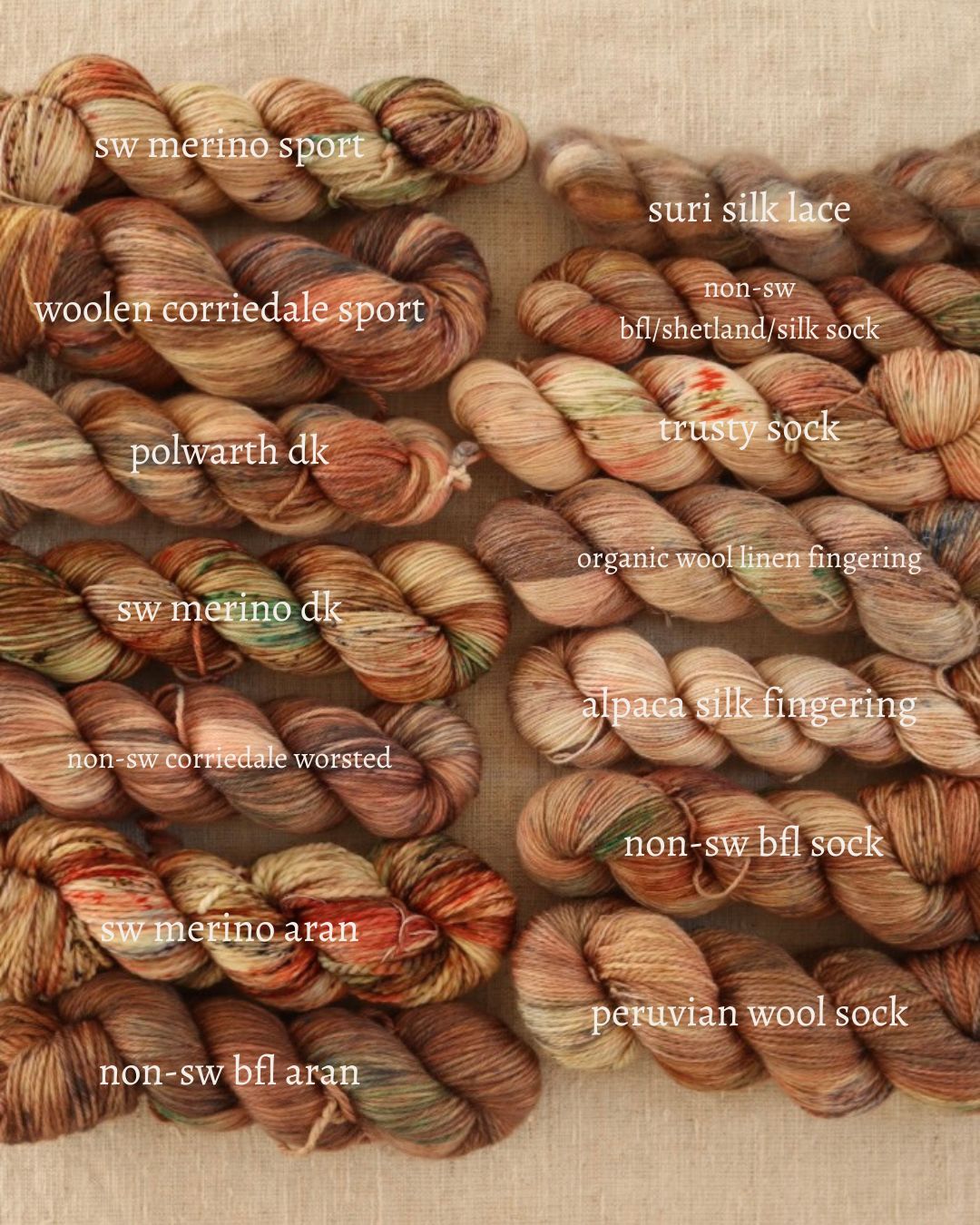 Non-SW Corriedale Worsted: Non-superwash / Worsted weight / 100% Corriedale / 200 meters, 218 yards per 100g skein / 4-ply