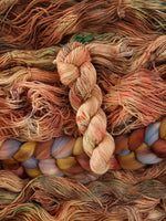 All skeins are carefully dyed with acid dye, washed and rinsed, however some bleeding may still occur. Each skein is unique and therefore colors may vary slightly from one to the next. Due to differences between monitors and screens, actual colors may also vary from what is shown. I recommend handwashing in cool water. Listing is for one skein only!