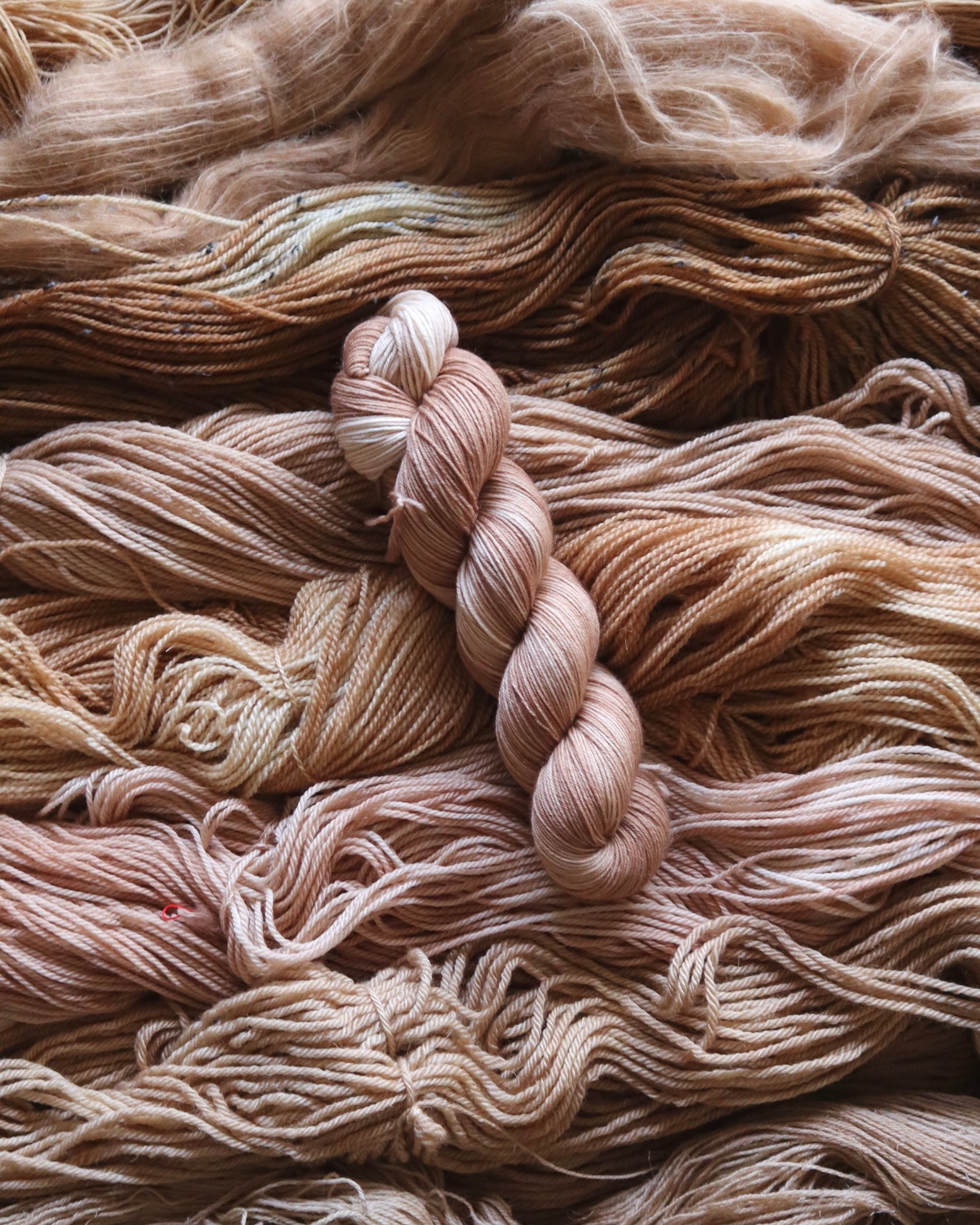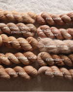 “Gobou” is Japanese for the burdock root - it’s so good as braised as a side dish so I thought it would be perfect as a coordinating tonal. This colorway is super hard to capture as it has the most variegation out of all the tonals. In some lighting it’s orange toned, in others it’s more of a traditional beige. Either way, I think this would work so well as a suri held together with a brighter variegated colorway!